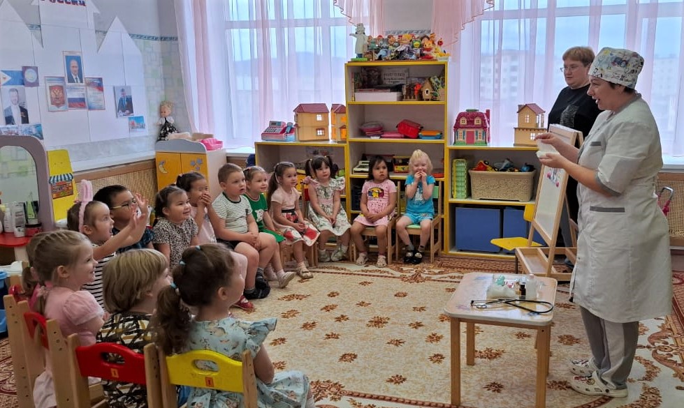 Воспитанники средней группы детского сада «Алёнушка» в этот день узнали, какие бывают специализации у врачей. Некоторые дети уже знают, что детский доктор называется педиатр, доктор, который лечит зубы – стоматолог. А ещё воспитатель и медицинская сестра рассказали ребятам, чем занимаются окулист и лор. Медсестра Екатерина Никашина показала детям медицинские инструменты и оборудование: фонендоскоп, зонд, термометр, бинт, молоточек и показала, как они используются.