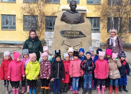 Воспитанники средней группы «Звездочки МБДОУ Детский сад «Аленушка» в сопровождении воспитателей Модановой Н.В. и Онопченко И.В. в преддверии празднования 120 – летия Ю.А.Билибина побывали с экскурсией у памятника знаменитого геолога - первооткрывателя колымского золота.