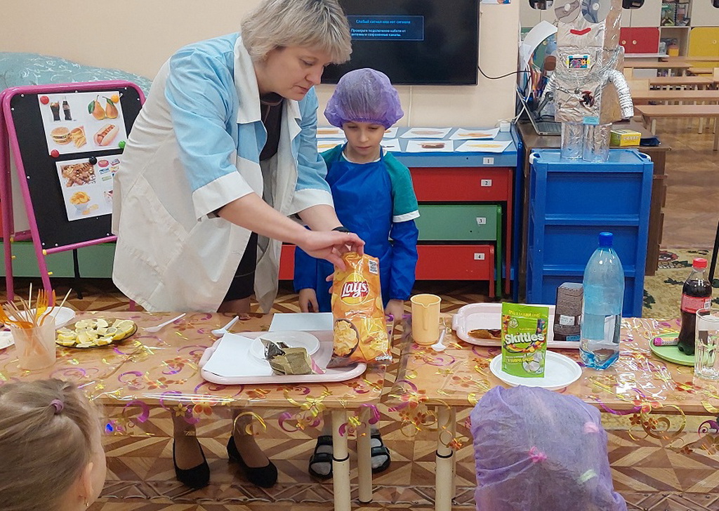 Для закрепления своих знаний о продуктах питания и их значения для человека, о понятиях «правильное» или «здоровое питание» «младшим научным сотрудникам» предстояло отправиться в лабораторию и провести множество интересных и познавательных экспериментов. А их оказалось немало.