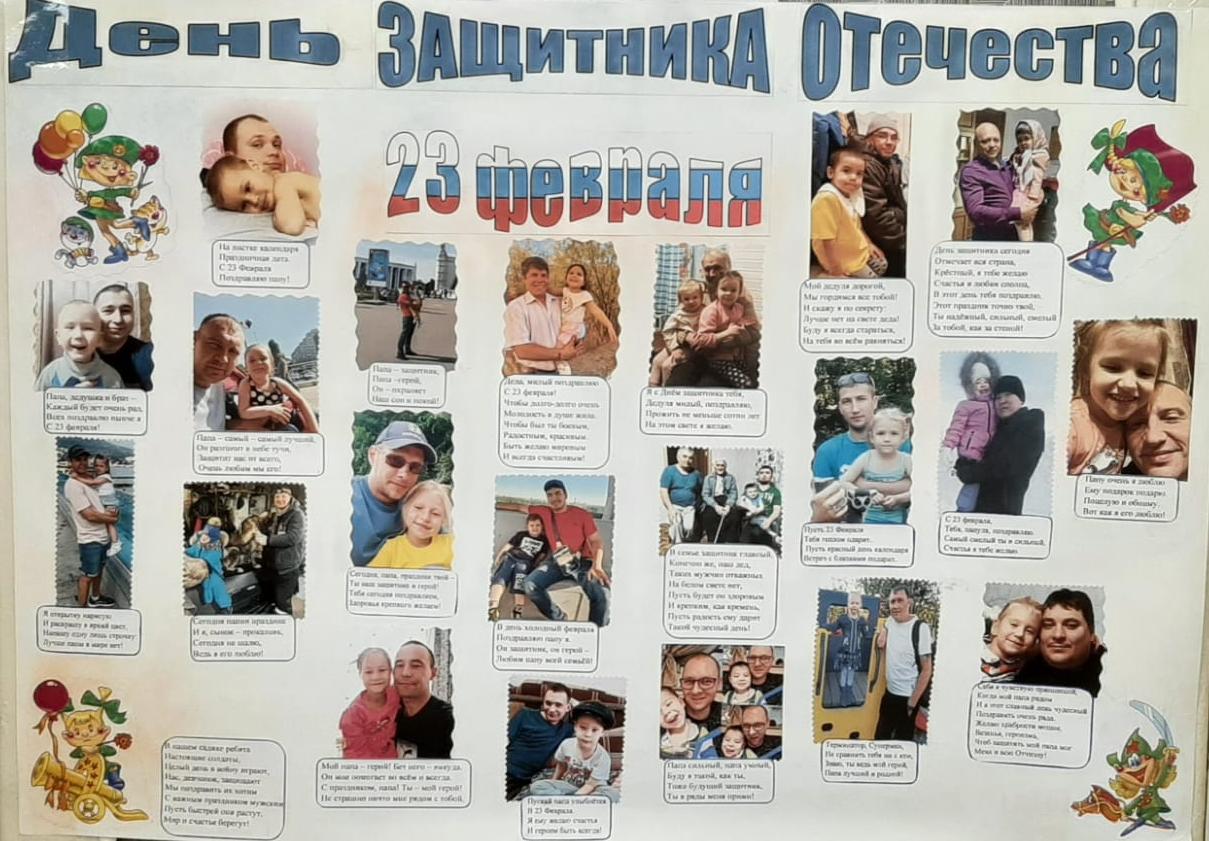 Под фотографиями своих пап, братьев и дедушек – защитников нашей Родины, ребята разместили поздравительные стихи и пожелания.