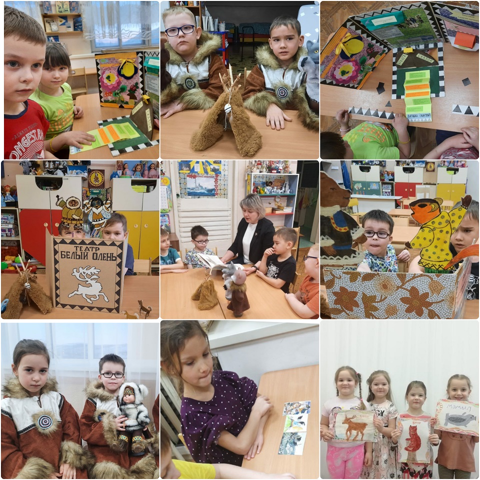 Воспитанники подготовительной к школе группы рассказывали сказки народов севера, вспоминали произведения чукотских поэтов и писателей, инсценировали небольшие произведения. С помощью лэпбука «Сокровища народной мудрости» отгадывали чукотские загадки, слушали, как ответ на них звучит на чукотском языке.