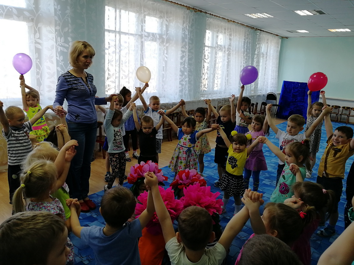 К детям в гости пришли летние цветы, которые станцевали веселый танец вместе с нашими дошколятами, а еще попроведовать детей пришла Веселинка, которая играла с детьми в игры, устраивала аттракционы, загадывала загадки, а дети для нее читали стихотворения о лете и пели песни. Дети с огромным удовольствием и весельем провели время.