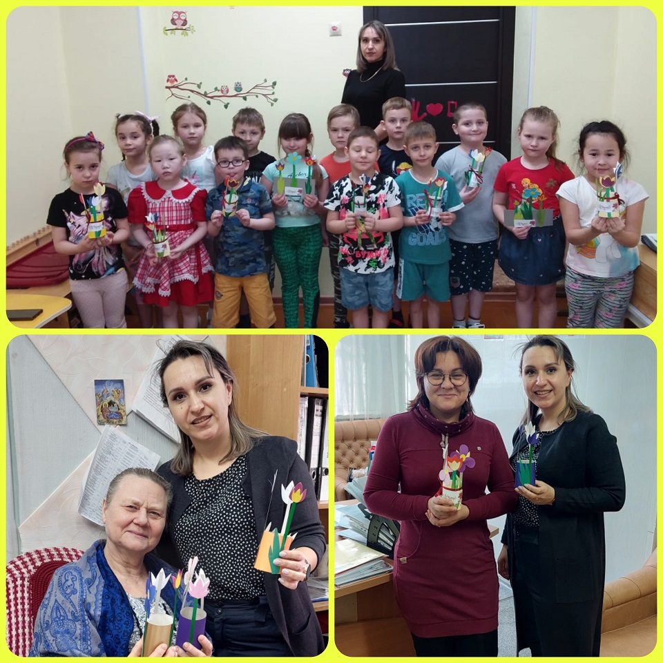 9 марта 2022 года педагог - психолог детского сада Тарасюк А.Л. посетила филиал БРФ ГБУ «ЧОКЦСОН» и передала женскому коллективу поздравления от детей с пожеланиями добра и здоровья, а также слова благодарности за такой нелегкий, но очень важный и полезный труд.