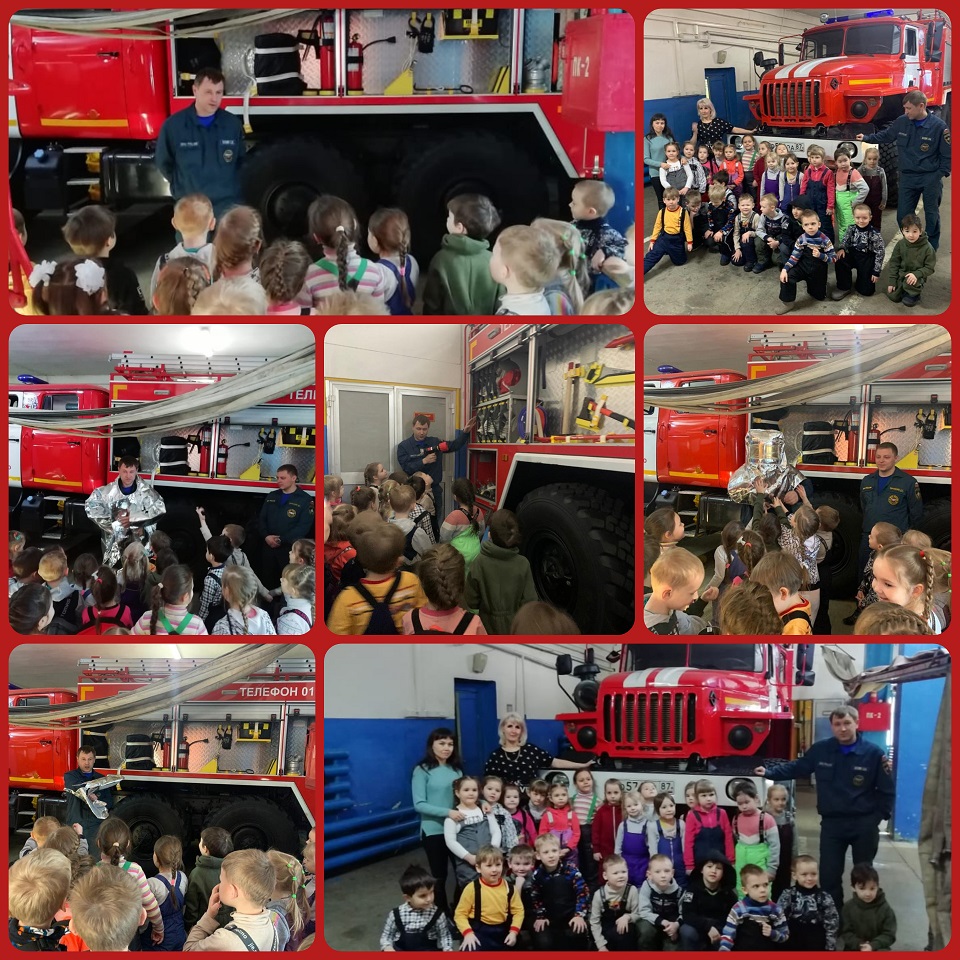 16 марта 2022 года воспитанники старшей группы «Лучики» МБДОУ Детский сад «Аленушка» побывали с экскурсией в пожарной части №7 ПСОФПС ГПС РУ МЧС.