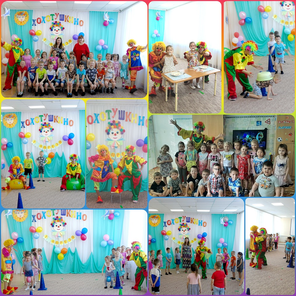 День Смеха в нашем детском саду прошел весело и шумно. Оказавшись в забавной деревне Хохотушкино, вместе с развеселыми клоунами Смешком и Хохотуном дети играли в веселые игры, отгадывали загадки, пели песни и танцевали, участвовали в конкурсах и эстафетах.
