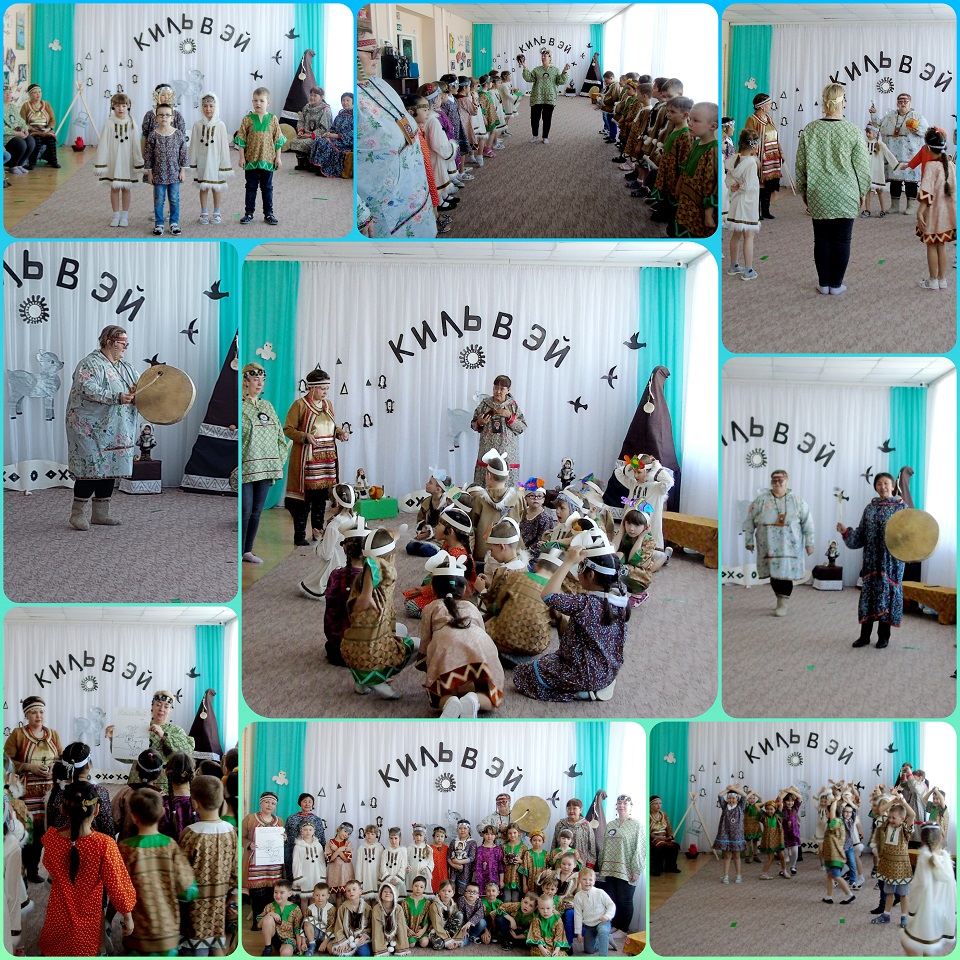 Вместе с гостями дошкольники играли в национальные подвижные игры, слушали песни на чукотском языке, декламировали стихотворение З.Ненлюмкиной «Олененок», познакомились с приемами игры на чукотском бубне «Ярар», научились игре с эскимосским мячом.