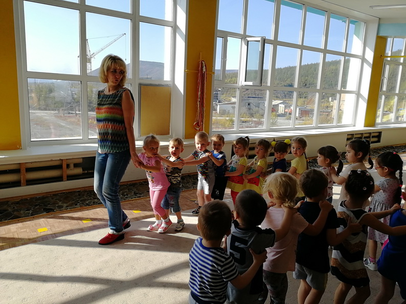 Под веселую музыку ребята путешествовали от станции к станции. На каждой остановке им необходимо было выполнять различные задания. Например, на станции «Хлопотушкино», дети должны прохлопать в ладоши определенный ритм. А на станции «Игровая», дети поиграли в подвижную «У медведя во бору», а некоторых станциях проявить быстроту и выносливость. К концу своего путешествия