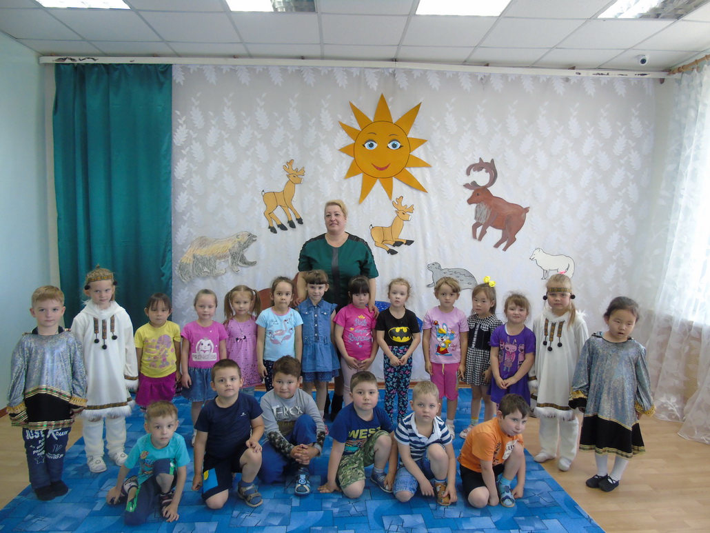 В начале мероприятия детям рассказали о празднике. Кто такие коренные жители. Какими промыслами они занимаются. Вспомнили какие сказки народов Севера мы читали.