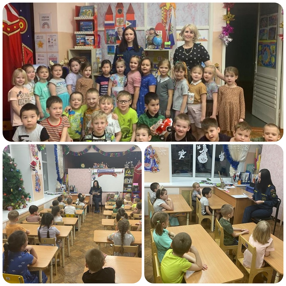 22 декабря 2022 года в преддверии Новогодних и Рождественских праздников к воспитанникам подготовительной к школе группы «Фиксики» пришла сержант внутренней службы младший инспектор ГПП СПСЧ № 4 СО №8 ФГКУ «Специальное управление ФПС №72 МЧС России» Селезнева Екатерина Владимировна.