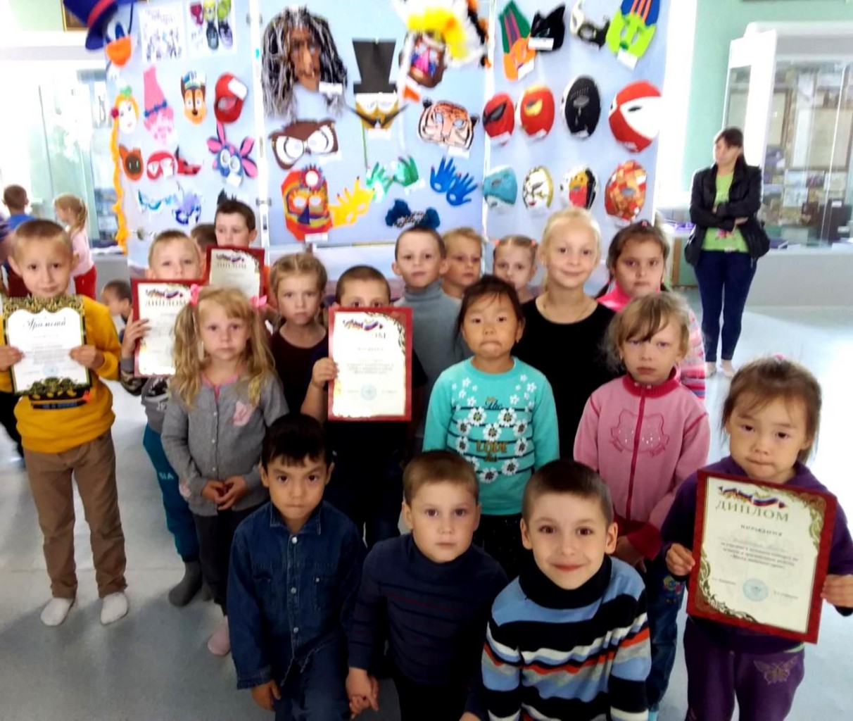Приз зрительских симпатий жюри отдали маске индейца, работа Винокурова Игната. Дипломами за участие награждены: Бабанин Дима, Никитина Ангелина, Дельянская Алина, Бурангулов Данияр, Демин Андрей.
