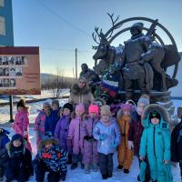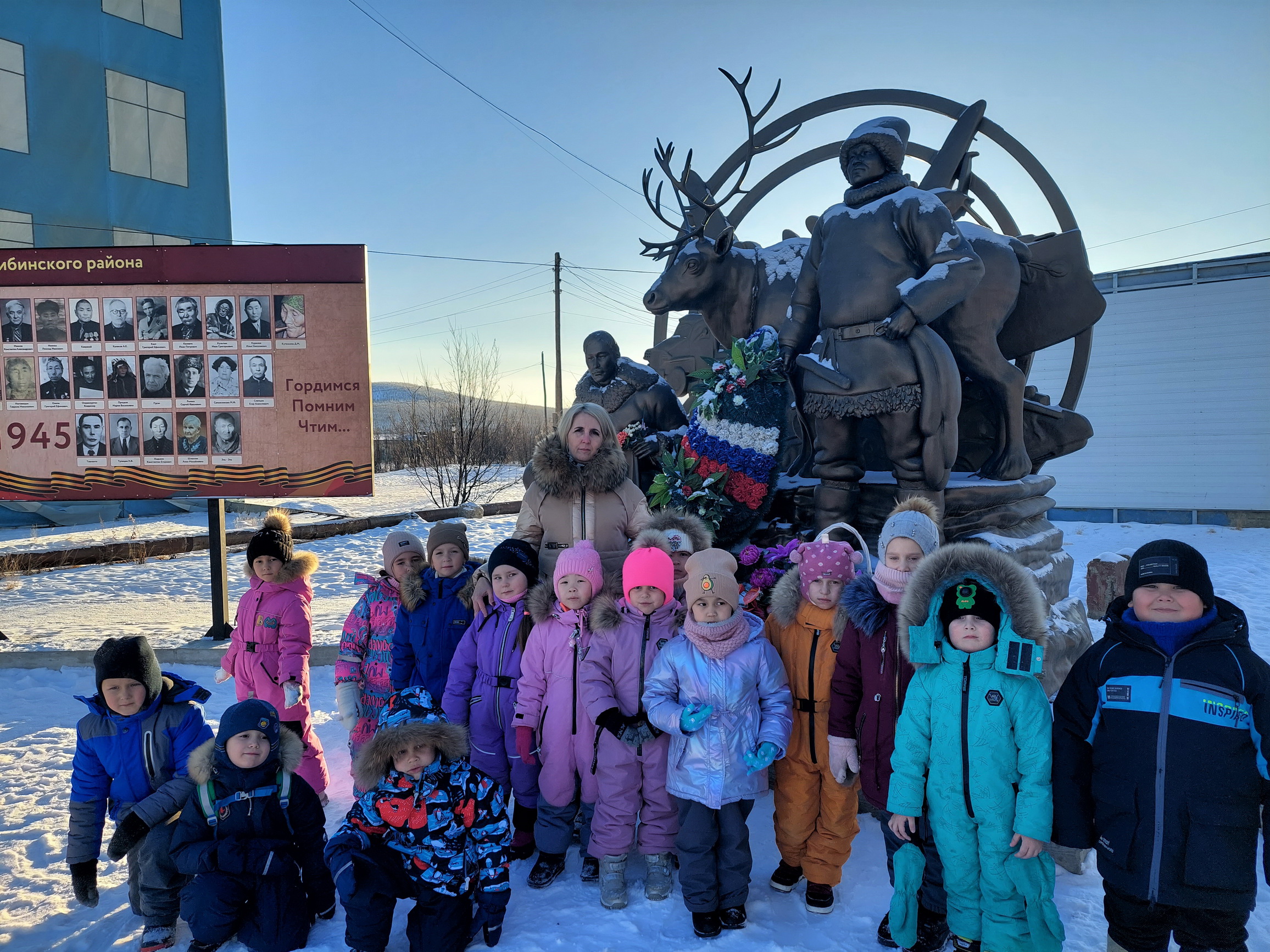 27 октября воспитанники подготовительной группы Детского сада «Алёнушка» отдали дань памяти героям, трудившимся в тылу во время войны, посетив памятник труженикам тыла. Воспитатель рассказала ребятам о нелёгком труде жителей Чукотки, об их вкладе в Победу над фашистами. Дети рассматривали изображённых скульптором оленевода - охотника, золотодобытчика, задавали вопросы, о том, как трудились эти люди и что они делали для Победы, почему возле памятника стоят цветы.