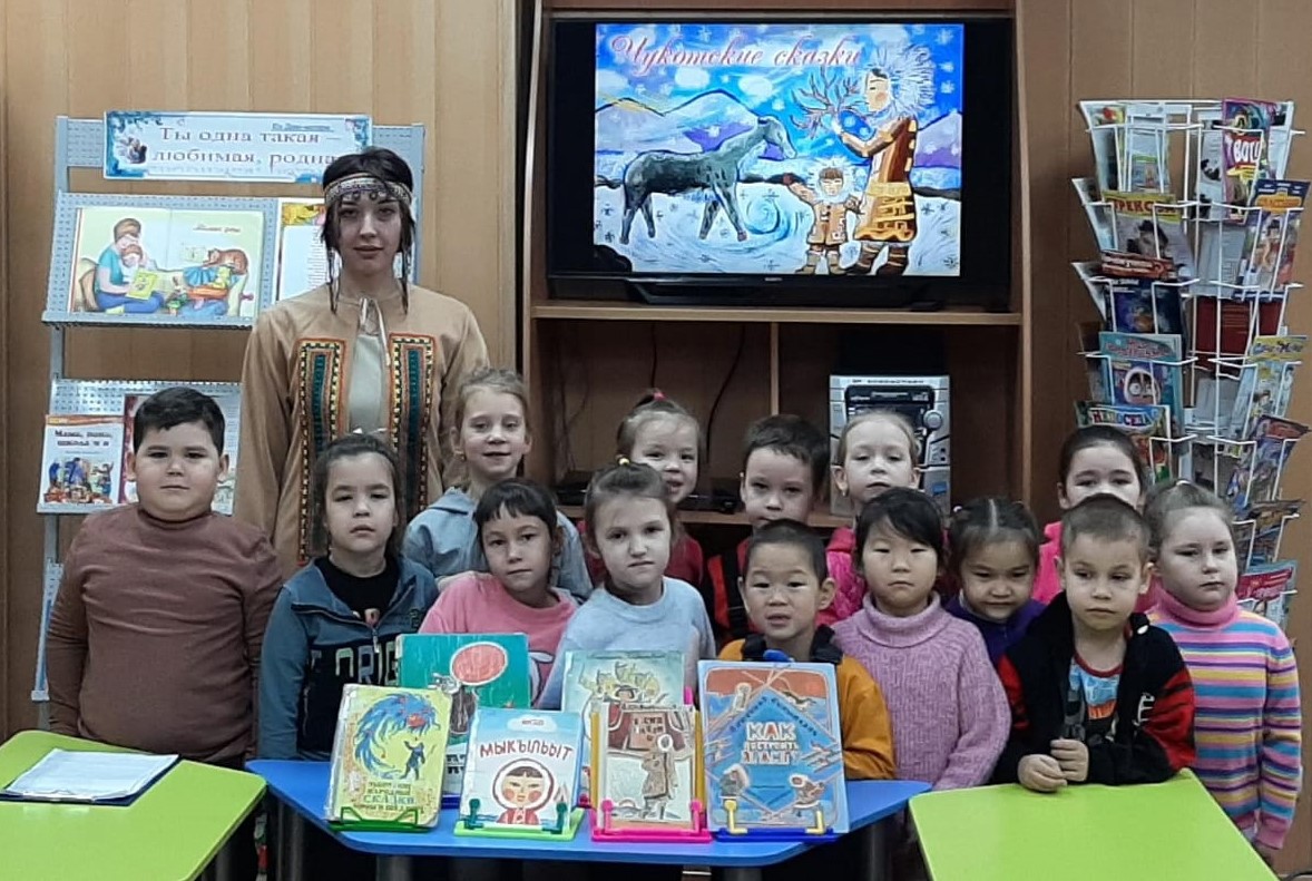 Воспитанники подготовительной группы детского сада «Алёнушка» 14 ноября посетили детскую библиотеку. Сотрудники библиотеки подготовили для ребят программу по сказкам коренных народов Чукотки.