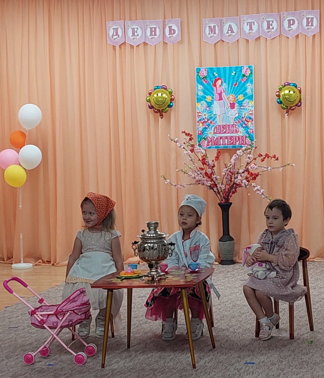В детском саду «Алёнушка» 24 и 27 ноября прошли утренники, посвящённые этому замечательному празднику. В старшей и подготовительной группах праздник проводился в спортивно – развлекательной форме. Дети, мамы и даже бабушки после весёлой и зажигательной разминки проявили себя в различных конкурсах и состязаниях. Ребята рассказали мамам и бабушкам стихи, исполнили песенку о маме, а воспитанники подготовительной группы представили зрителям «Марийский танец». Ребята средней группы поздравили мам песенкой, показали сценку «Три мамы», празднично «нарядили» мам и исполнили с ними дефиле, а бабушки «испекли» на всех «блинчиков». Дети с младшей до выпускной – подготовительной группы с любовью изготовили подарки для своих мам, которые и подарили в завершении праздника. Праздники получились добрыми и трогательными.
