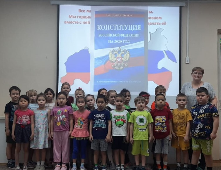 Начались мероприятия с занятия «Путешествуем по России», где ребята познакомились с символами нашей Родины. Затем, 30 ноября, в День Государственного герба Российской Федерации прошло познавательное мероприятие, где ребята читали стихи, смотрели презентацию о создании Герба, значении геральдических знаков на нём. 12 декабря, в День Конституции Российской Федерации, старшие дошкольники закрепили знания о символах государства и познакомились с основным законом страны - Конституцией. Дети узнали, что в Конституции отражены все символы, на первой странице – Гимн нашей страны. Ребята стоя исполнили Гимн. А также в Конституции прописаны права граждан нашей страны. Играя и отвечая на вопросы, ребята закрепили полученные знания.