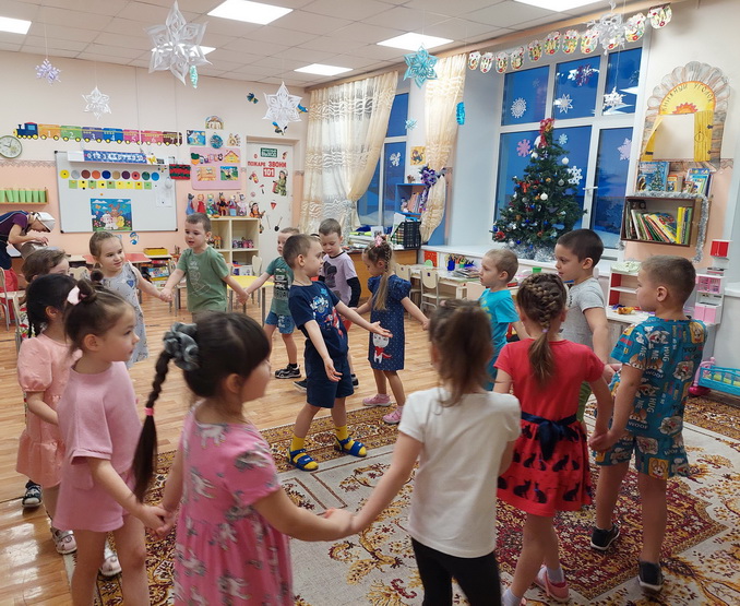 В январе люди с давних времён замечали природные явления, которые стали называть народными приметами, очень интересные приметы дети вспомнили и назвали. А ещё на Крещение в старину на Руси были народные гулянья, праздновали свадьбы и гадали. Вспомнив отрывок из произведения великого поэта «Раз в крещенский вечерок девушки гадали…» воспитатель предложила поиграть в народные игры и гадания. Девочки с энтузиазмом кидали за спину башмачок, затем ребята поиграли в игры: «Найди пару» и «Прялица».
