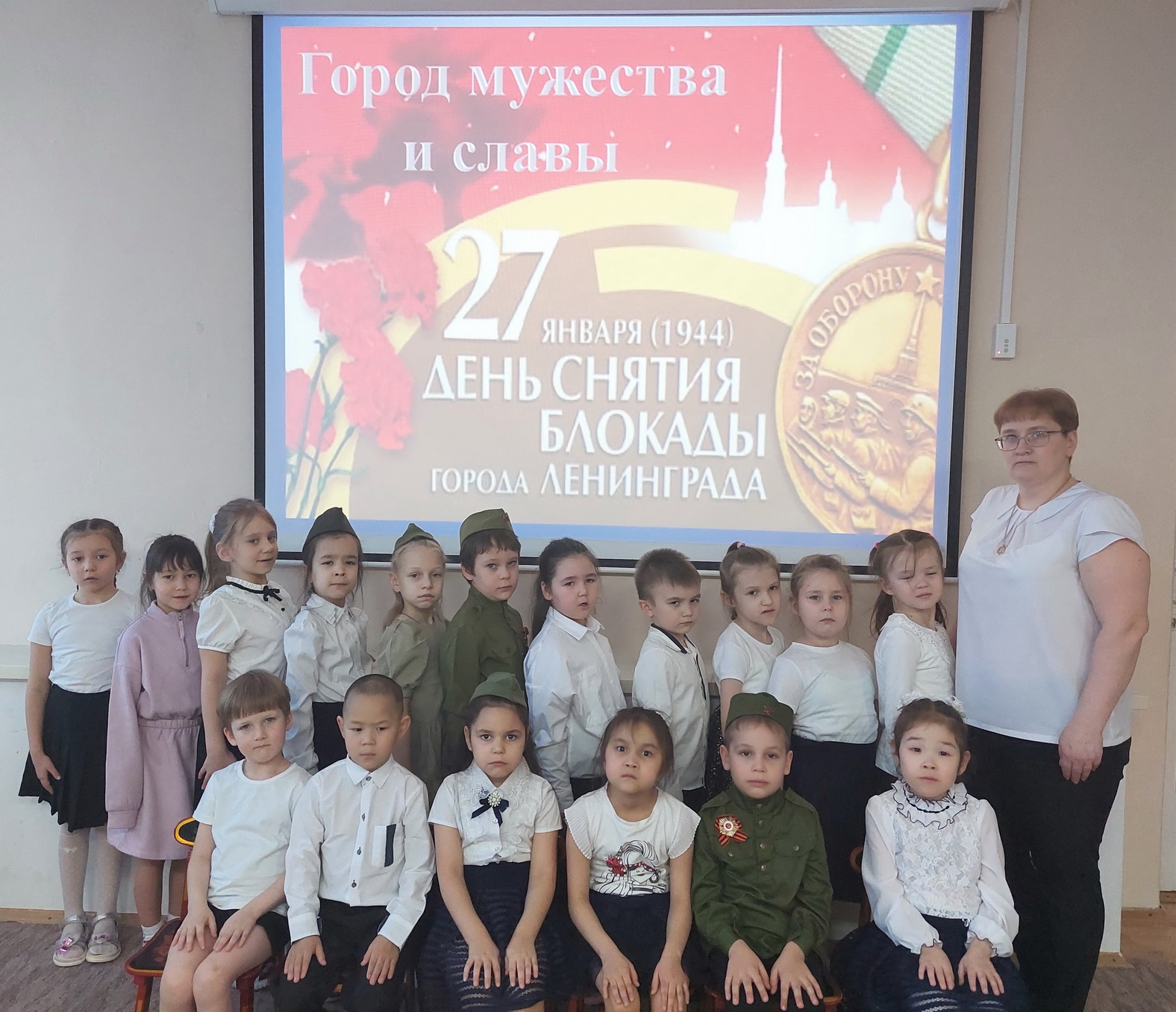 27 января в России отмечается День воинской славы. Этот день посвящён великому событию Великой Отечественной войны – снятию блокады Ленинграда. В этом году отмечается 80 лет со дня освобождения города – героя. Для воспитанников подготовительной группы, в канун этой даты, 26 января было проведено патриотическое мероприятие «Город мужества и славы». Ребята посмотрели презентацию о снятии блокады Ленинграда, узнав о подвиге людей, которые в сложнейших условиях голода, холода и бомбёжек не сдавались врагу и работали для освобождения города от фашистских захватчиков. Дети прочли стихи о жителях и защитниках Ленинграда, о детях блокадного Ленинграда, о Дороге жизни, проложенной через Ладожское озеро. Дошкольники прониклись атмосферой подвига и самопожертвования ленинградцев и почтили минутой молчания их память.