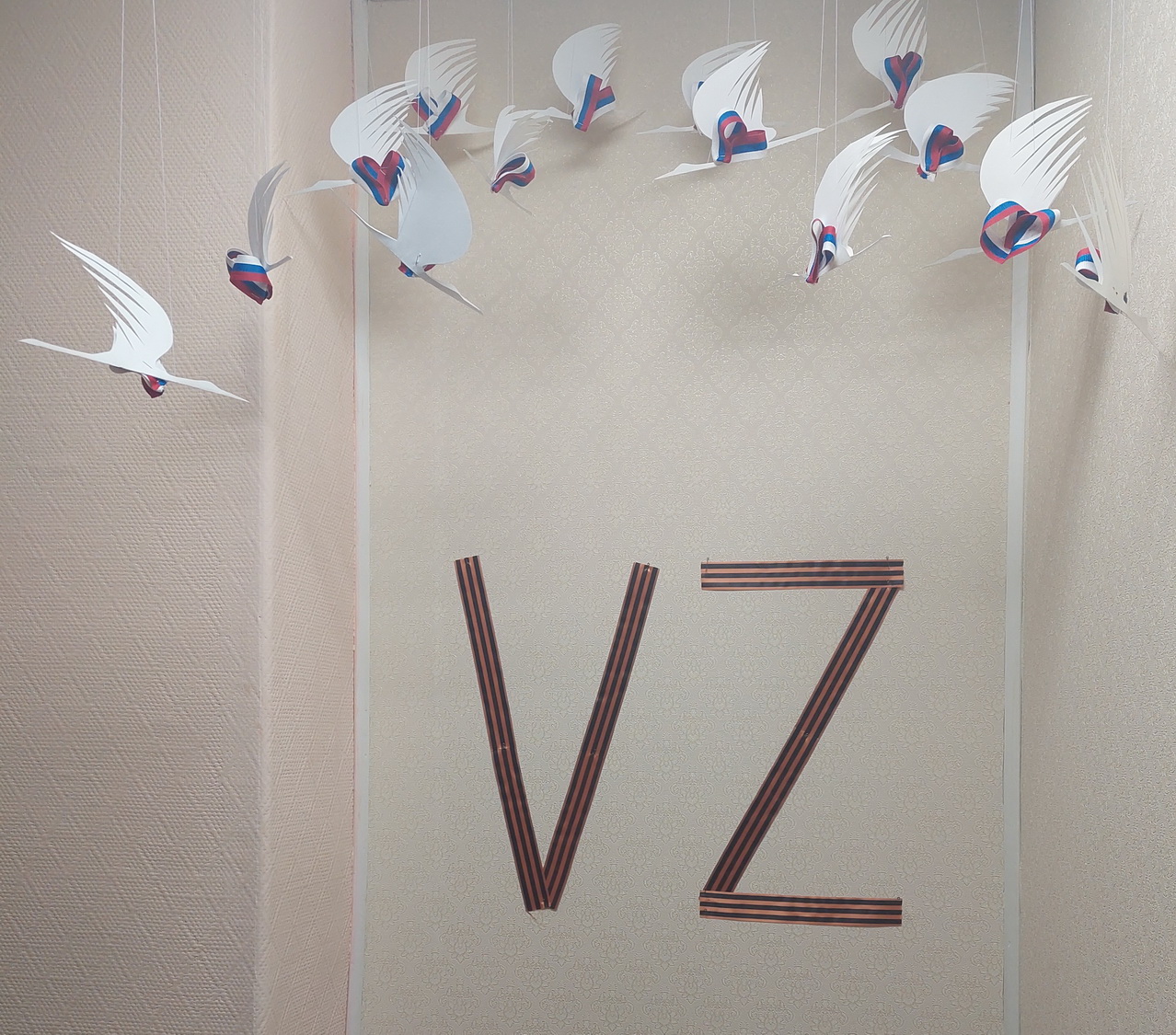 Педагоги детского сада «Алёнушка» решили создать арт-обьект, посвященный участникам специальной военной операции, проявившим отвагу, мужество и героизм. Белые журавли символизируют души воинов, погибших за освобождение жителей Донецкой и Луганской республик. Сердца в триколоре – то, что россияне сердцем с ними и не забудут героев, отдавших свои жизни за мир и свободу. А буквы VZ, ставшие «эмблемой» специальной военной операции, с символикой георгиевской ленточки символизируют веру в победу Российской Армии.