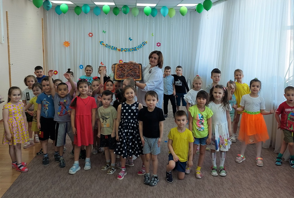 День рождения детского сада отмечали праздничным досугом. В музыкальном зале воспитанники старшей и подготовительной групп рассказывали стихи, пели песни и водили хоровод. Повара в этот день побаловали детей вкусным сладким пирогом.