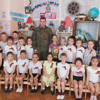 В России проводится цикл мероприятий, посвященных празднованию Дня Победы в Великой Отечественной войне 1941–1945 гг. Детский сад «Алёнушка» принимает активное участие в военно – патриотических мероприятиях. В рамках акции «Наследники Победы», воспитанники подготовительной к школе группы, под руководством воспитателей, провели Акцию «Георгиевская лента». Педагоги рассказали детям о значении цветов на Георгиевской ленте, о том, почему она является символом памяти о защитниках Отечества. Дети вручили Георгиевские ленты и памятки о правилах её ношения членам своей семьи и сотрудникам детского сада, а также военнослужащему войсковой части 46179-Б, который провёл урок мужества в группе. В рамках проведения Всероссийской Акции «Верни герою имя», военнослужащий был приглашён в детский сад. Он рассказал детям о Великой Отечественной войне, о том, что совсем молодые ребята и девушки уходили на фронт и воевали за наше мирное будущее. Ребята отвечали на вопросы и беседовали с гостем о своих предках, которые воевали с фашистской Германией, о том, что сейчас воины тоже защищают независимость и мир нашей Родины, что нужно беречь память о тех, кто мужественно защищал нашу страну.
