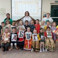В этот день для воспитанников старшей и подготовительной групп детского сада «Алёнушка» прошёл утренник «День славянской письменности и культуры». Экскурс в историю возникновения праздника начался с повествования сказителей под звучание гуслей. Затем слайды презентации помогли ребятам увидеть старинные буквы, гусиное перо, которым раньше писали, памятник Кириллу и Мефодию и первый печатный станок. Королева книг рассказала, как буквы назывались в старину, как учили детей в церковных школах.