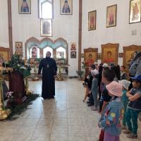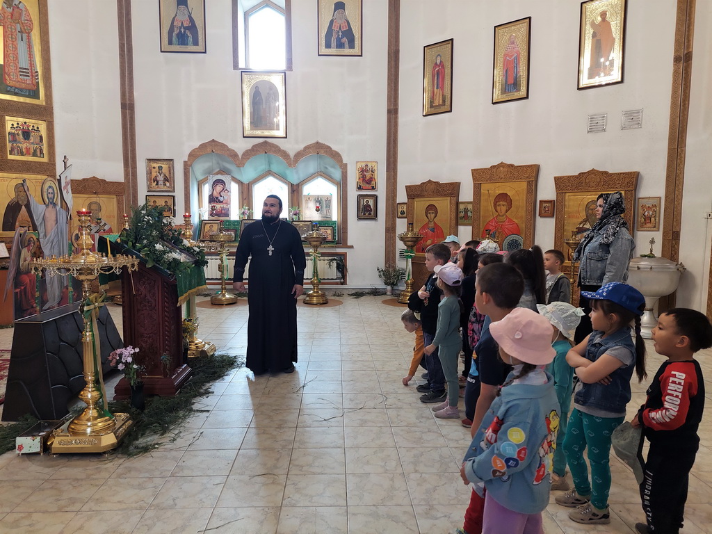 24 июня воспитанники детского сада «Алёнушка» старшего дошкольного возраста побывали в храме Серафима Саровского. У ворот храма детей гостеприимно встретил отец Михаил. Он рассказал ребятам об особенностях христианского православного Храма, о Серафиме Саровском, в честь которого назван Храм в нашем городе. В храме священнослужитель обратил внимание детей на внутреннее устройство и убранство. Храм нарядно украшен свежими цветами и травой. Праздник Троицы отмечается летом, её ещё называют Живоначальной, а символом жизни является дерево, у нас на Руси, это берёза. На Троицу все православные храмы украшают цветами, свежескошенной травой и берёзовыми веточками, а священники проводят службу в зелёных одеждах. В конце встречи, отец Михаил призвал детей быть добрыми друг к другу, помнить о своих близких и заботиться о них.