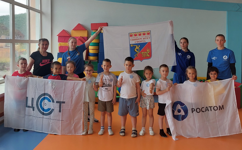 26 июля к воспитанникам старшего дошкольного возраста пришли гости – студентки и преподаватель Смоленского государственного университета спорта. Девушки подготовили для ребят спортивную программу «Весёлые старты». Для разминки дети выполнили «весёлую зарядку» под музыку. Затем разбившись на 2 команды «Белый медведь» и «Светофор» дошколята начали старты. Первой была эстафета на скорость и координацию движений «бег змейкой», затем на выносливость – прыжки на одной ноге, в эстафете «черепашки» нужно было не только быстро проползти на четвереньках, но и не уронить со спины бубен – панцирь. С мячами было два задания: прыжки с зажатым между ног мячом и прыжки или бег боковым шагом парами с зажатым мячом. Не обошлось и без состязания в меткости, где нужно было забросить мешочек в баскетбольную корзину. Последним было командное задание «Гусеничка». С каким азартом ребята болели за своих товарищей! Побеждала, то одна, то другая команда! Но в итоге победила дружба. А в конце мероприятия организаторы наградили участников памятными значками и браслетами. Серия физкультурных мероприятий инициирована Госкорпорацией Росатом, и мы ждём гостей из Смоленска для продолжения спортивных встреч.