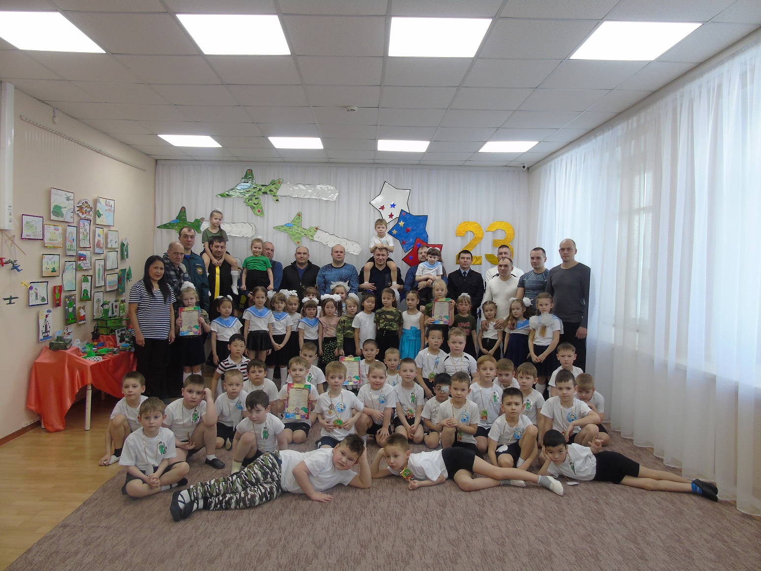 - совместно со своими папами принимали участие в спортивно – музыкальных праздниках, посвященных 23 февраля: «Мы ребята смелые, ловкие, умелые», «Будем в армии служить».