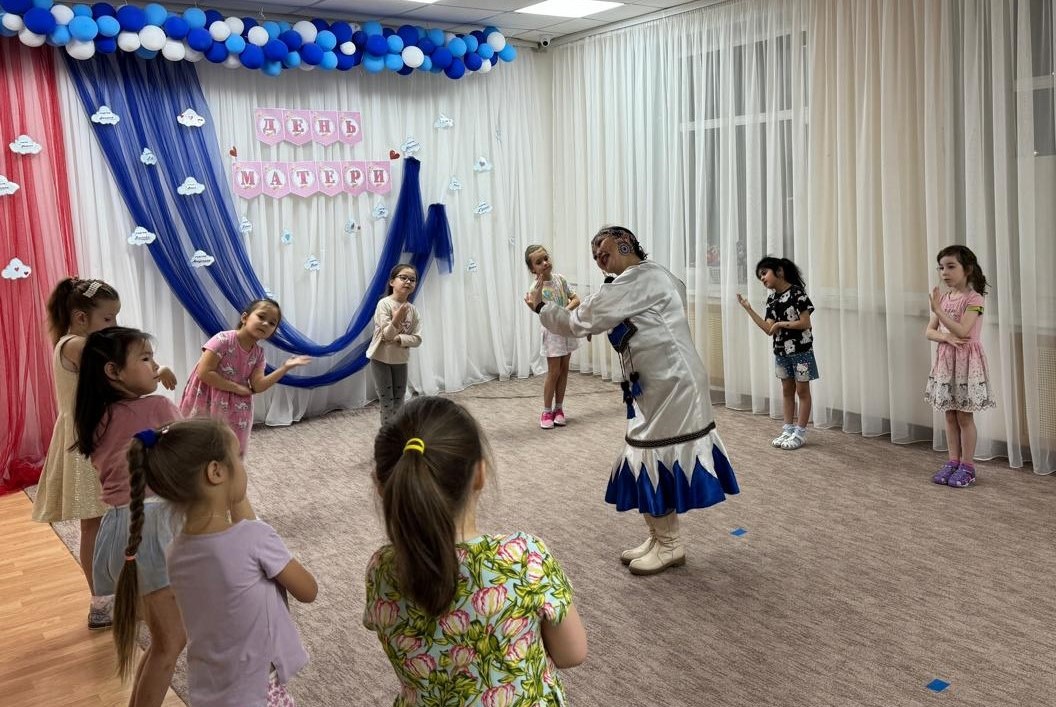 В детском саду «Алёнушка» проводятся подготовительные мероприятия в рамках празднования 94 –летия образования Чукотского автономного округа. Чтобы познакомить детей с движениями для танца, в подготовительную группу была приглашена руководитель национального танца «Тиркитир», Тарабукина Арина Игоревна из Центра досуга и народного творчества.