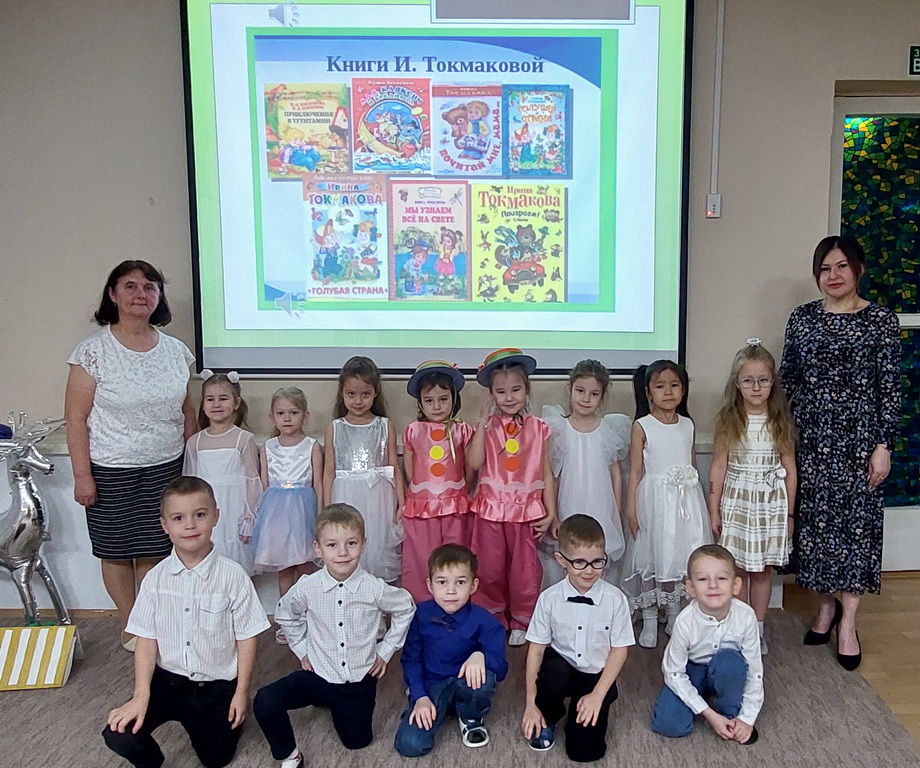 3 декабря воспитанники старшей и подготовительной групп детского сада «Алёнушка» приветствовали зиму, став участниками литературной гостиной, посвящённой творчеству известной детской поэтессы и прозаика Ирины Токмаковой. Ребята из старшей группы выучили стихи поэтессы про зимнее время года, спели песенки на стихи Ирины Петровны «Осинка» и «Пряничные человечки», а под стихотворение «Времена года» исполнили танец Снежинок. С помощью пальчиковой игры дети выучили стихотворение «Десять птичек – стайка». Закончилась встреча танцем под весёлую и задорную песню «Спляшем», слова которой перевела с шотландского Ирина Токмакова.