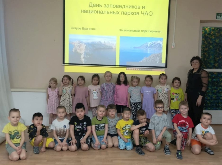 В этот день в старшей группе детского сада «Алёнушка» прошло тематическое занятие, посвящённое особым природоохраняемым территориям Чукотского автономного округа. Ребята узнали много нового и интересного, они побывали на виртуальной экскурсии с помощью презентации по национальному парку «Беренгия» и заповеднику «Остров Врангеля». Дети познакомились с историей создания, красотой и богатством заповедных мест, с обитателями заповедного мира: с животными и растениями, занесенными в Красную книгу, полюбовались красочными фотографиями ландшафтов. В конце мероприятия дети ответили на вопросы, назвали наиболее запомнившихся им животных и выразили желание побывать в заповедных местах Чукотки.