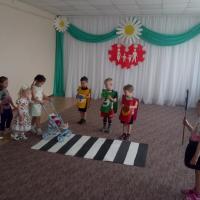 Воспитанники младшей группы приняли участие в сюжетно – ролевой игре «Светофор», в ходе которой дети познакомились с правилами безопасного поведения на дороге (поведение на тратуаре, переход проезжей части, пользование дорожной разметкой для пешеходов) , закрепили знания сигналов светофора, где следует играть на улице.