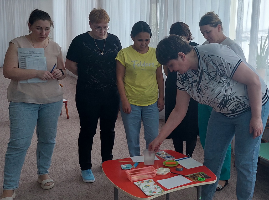 В ходе методического объединения воспитатели всех возрастных групп в форме презентаций и мастер-класса поделились с коллегами личным опытом работы по организации рабочего места дошкольника на занятиях по изобразительной деятельности.