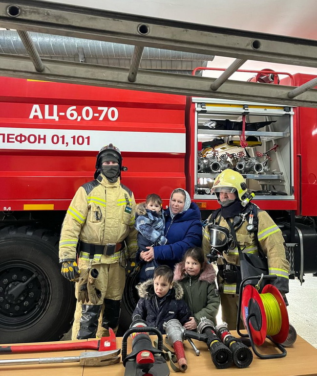25 марта воспитанники семейной группы – структурного подразделения детского сада «Алёнушка» в сопровождении воспитателя отправились на экскурсию в находящуюся поблизости с домом пожарную часть. Дети видели выходящие из гаражей части пожарные машины, пожарных и очень хотели посмотреть, что же это такое - пожарная часть. И вот была организована экскурсия. Детей радушно встретили начальник караула и пожарные, одетые в экипировку. Во время экскурсии дети познакомились с работой пожарных, техникой, одеждой, оборудованием, которые применяют во время тушения пожаров. Дети посидели в машине, как настоящие пожарные и получили массу положительных эмоций и впечатлений.
