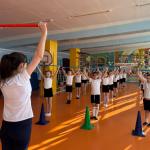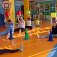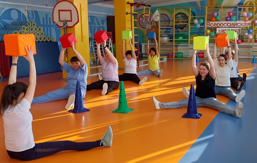 В этот день руководитель физического воспитания Шаймарданова Эльвира Ришатовна провела с педагогами и воспитанниками детского сада утреннюю гимнастику, во время которой они выполнили комплексы упражнений на все группы мышц: воспитанники с гимнастическими палками, педагоги – с мягкими модулями.
