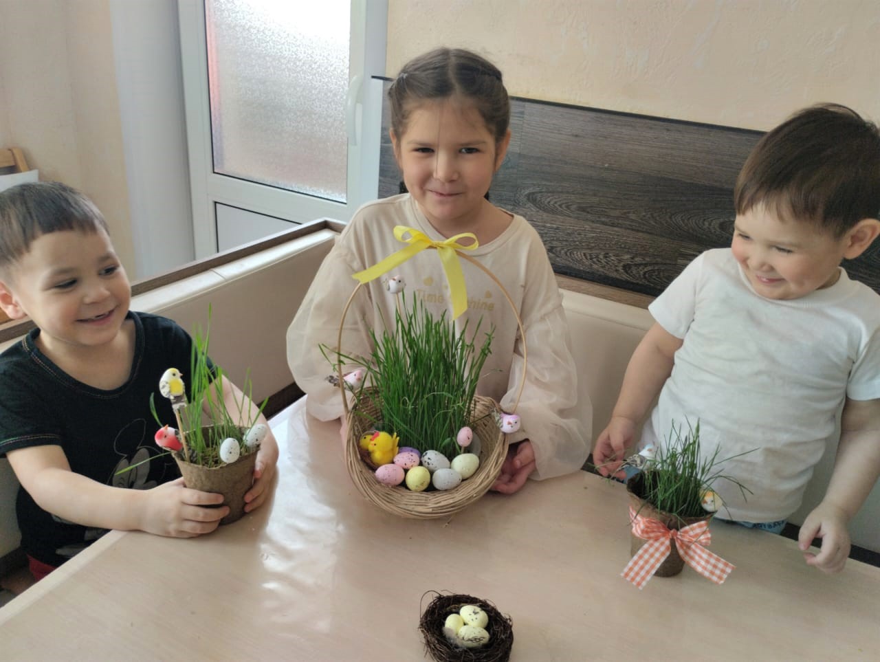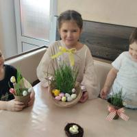 В преддверии праздника Пасхи посадили семена зелёной травки. Детям было интересно поучаствовать в посадке семян, а затем они с увлечением наблюдали, как они прорастают, появляются первые всходы. С большим удовольствием ребята ухаживали за травкой, поливали свои посадки. В ходе проекта Юлия Ивановна рассказывала детям о празднике Пасхи. Выросшую травку дети, с помощью мамы – воспитателя использовали для украшения пасхального стола, добавив к декору яйца, ленточки и фигурки птичек.