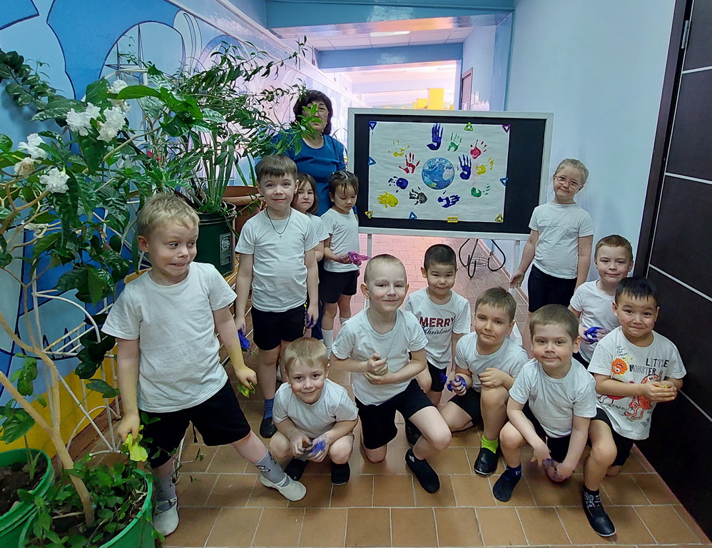 Воспитанники старшей группы детского сада «Алёнушка» тоже приняли участие в международном движении по сохранению нашей прекрасной планеты. Воспитатель в ходе просмотра презентации познакомила ребят с целями праздника. Дети рассматривали разные земные ландшафты и беседовали о значении воздуха, воды, растений для жизни на Земле. Ребята сделали заключение, что человек должен сохранять природные богатства, а не загрязнять планету продуктами своей деятельности. Закончилось мероприятие коллективной продуктивной деятельностью. Дети оформили штампами своих ладошек экологический плакат, который символизирует многообразие жизни на планете Земля.