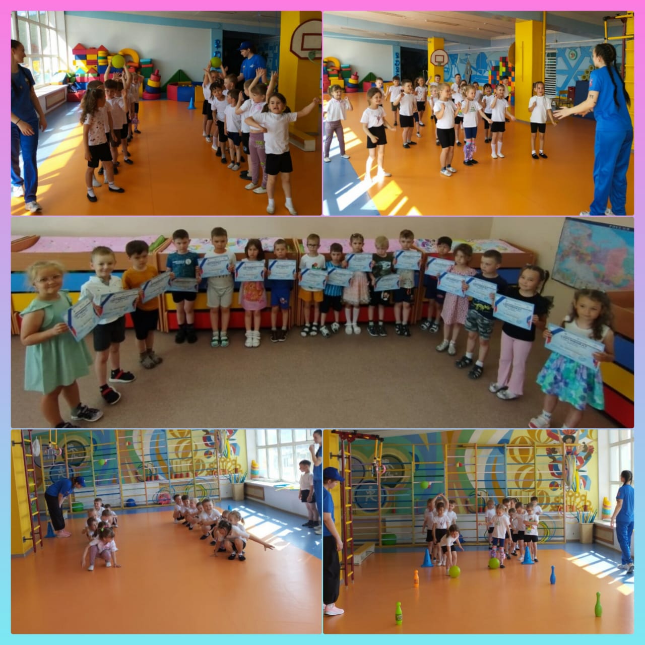 16 июля 2025 года к воспитанникам средней и старшей групп МБДОУ Детский сад «Аленушка» пришли гости – студентки Смоленского государственного университета спорта. Девушки подготовили для ребят спортивные соревнования «Весёлые старты». Для разминки дети выполнили «весёлую зарядку» под музыку. Затем, разбившись на 2 команды, дошколята начали старты. Первой была эстафета на скорость и координацию движений «юные хоккеисты», затем на выносливость – ходьба «гуськом». С мячами было два задания: прокати мяч между кеглями и передача мяча из-за головы. С каким азартом ребята болели за своих товарищей! Побеждала, то одна, то другая команда! Но в итоге победила дружба.