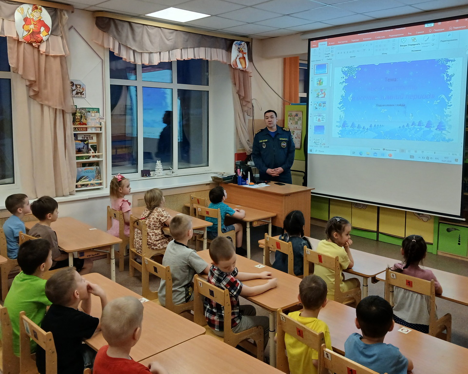 В ходе встречи Василий Семенович рассказал детям об опасностях, которые могут подстерегать людей в осенне – зимний период у воды. Инспектор акцентировал внимание на том, что находиться у водоемов без взрослых строго запрещено, так как это может привести к трагическим последствиям. Сотрудник чрезвычайного ведомства поделился реальными случаями из практики, когда из - за несоблюдения правил безопасности дети попадали в опасные ситуации. Эти истории произвели на ребят особое впечатление и помогли им лучше осознать важность соблюдения рекомендаций. Драный В.С. активно вовлекал детей в обсуждение, что сделало занятие интерактивным и интересным.