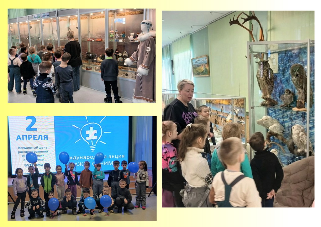 В этот день дошкольники присоединились к Всероссийской акции «Зажги синим», которая проводилась в музее в честь Всемирного дня распространения информации о проблеме аутизма. Символом этого дня является синий цвет, как ассоциация с небом и спокойствием, что отражает атмосферу принятия и понимания. Цель акции – подчеркнуть необходимость помогать людям, страдающим аутизмом, повысить уровень их жизни.